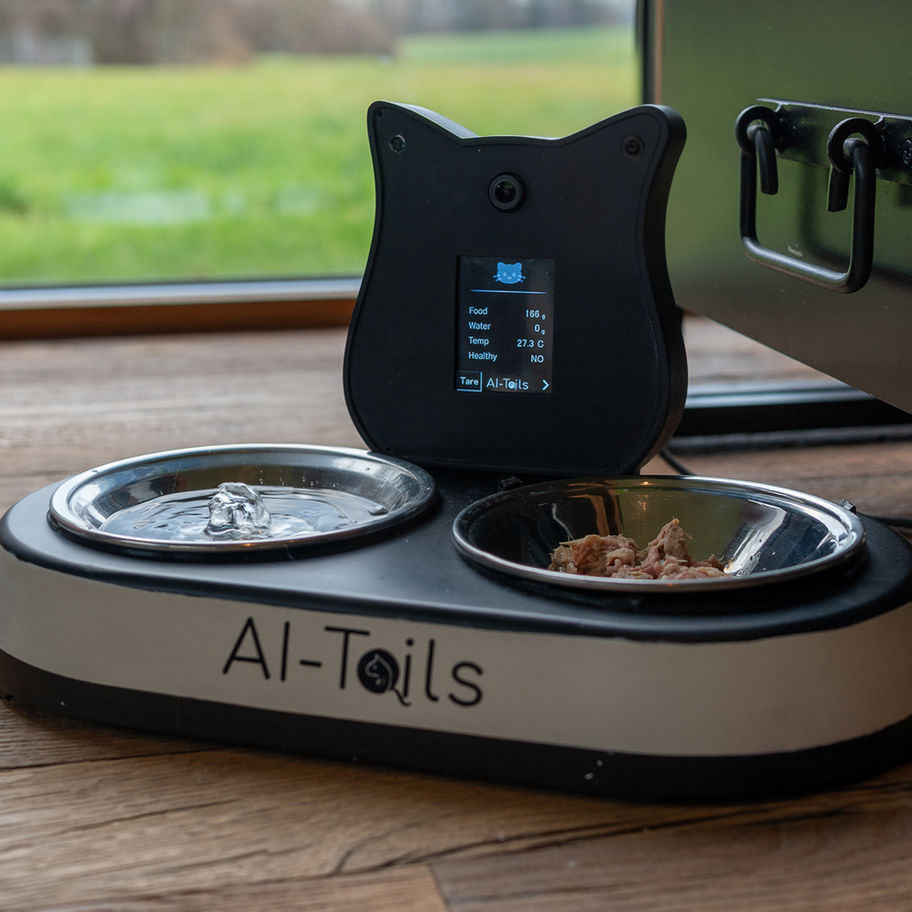 AI-Tails One is an intelligent feeding and drinking station designed to help cat owners monitor their pet’s wellbeing—effortlessly and in real time including integrated temperature sensing.
